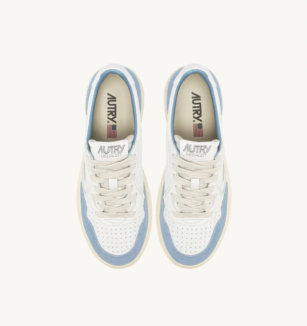 La Medalist d’Autry inaugure une nouvelle ère de style et de confort. Avec un profil bas à la cheville, cette basket pour homme est fabriquée en cuir de chèvre blanc et présente des empiècements daim bleu ciel avec un talon blanc pour définir la tige.