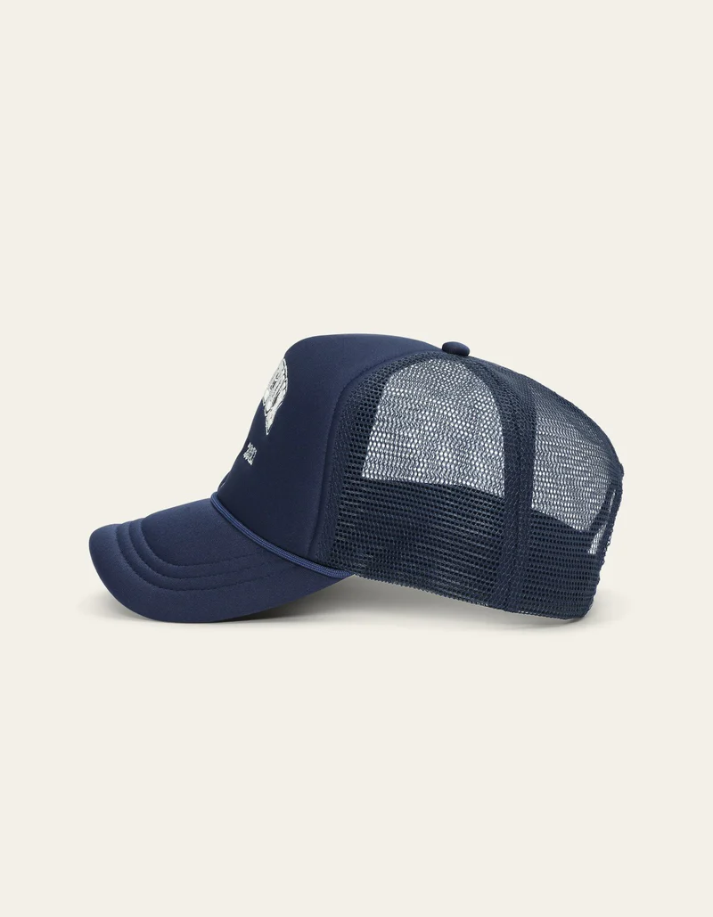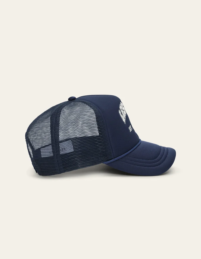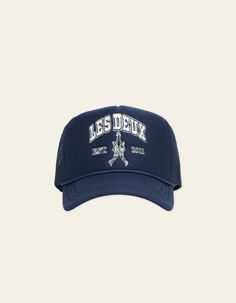 Casquette trucker classique avec panneau avant en mousse et côtés en maille respirante. Présente une broderie audacieuse d’un joueur de basketball sur le devant et une fermeture snapback ajustable.