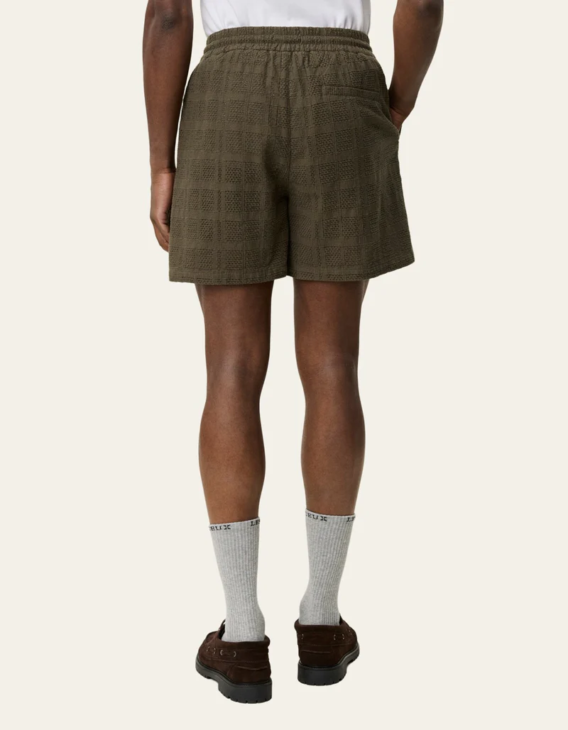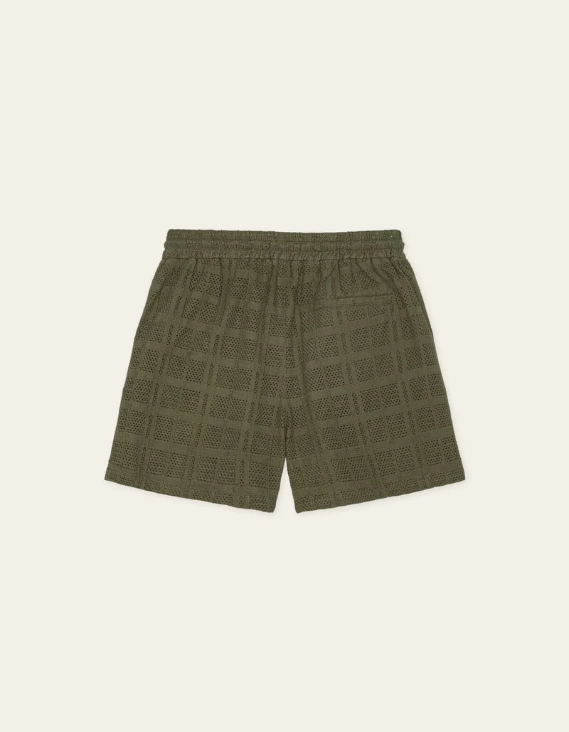 Short décontracté confectionné en broderie anglaise assortie pour une sensation légère et texturée. Il est doté d’une ceinture élastique à cordon de serrage et de poches latérales épurées.