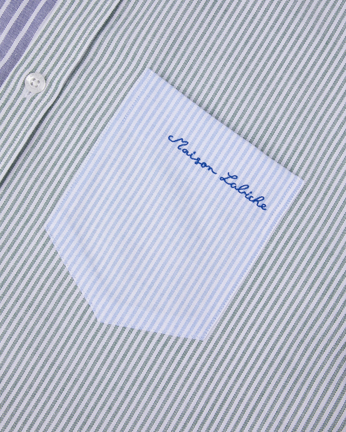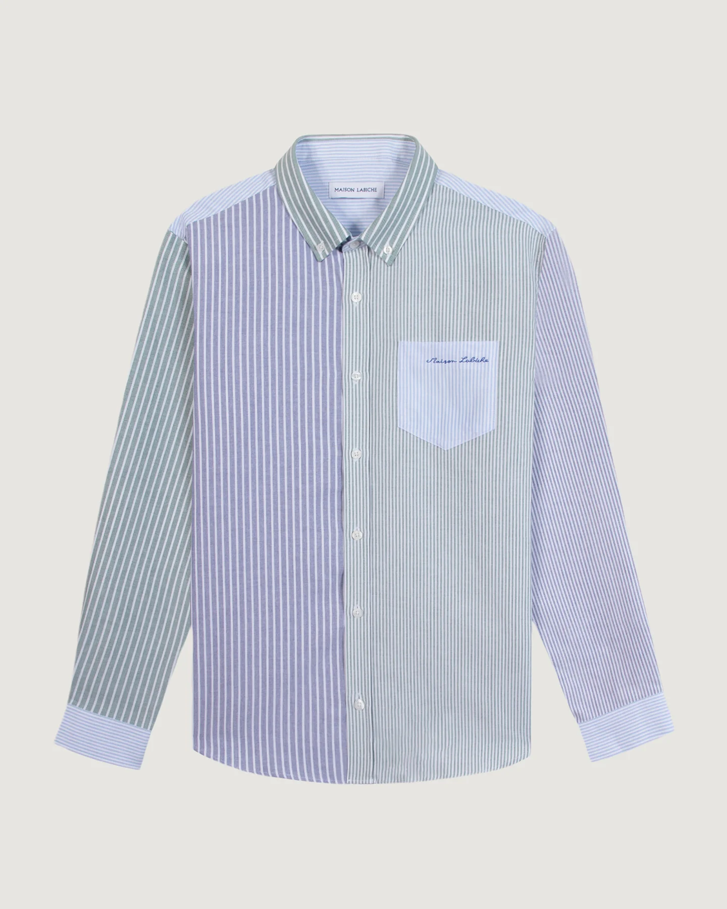 Notre chemise iconique Bonne Graine a une coupe droite légèrement ajustée, avec une poche poitrine sur le cœur et des boutons gravés Maison Labiche. Sa broderie est la nouvelle signature Maison Labiche