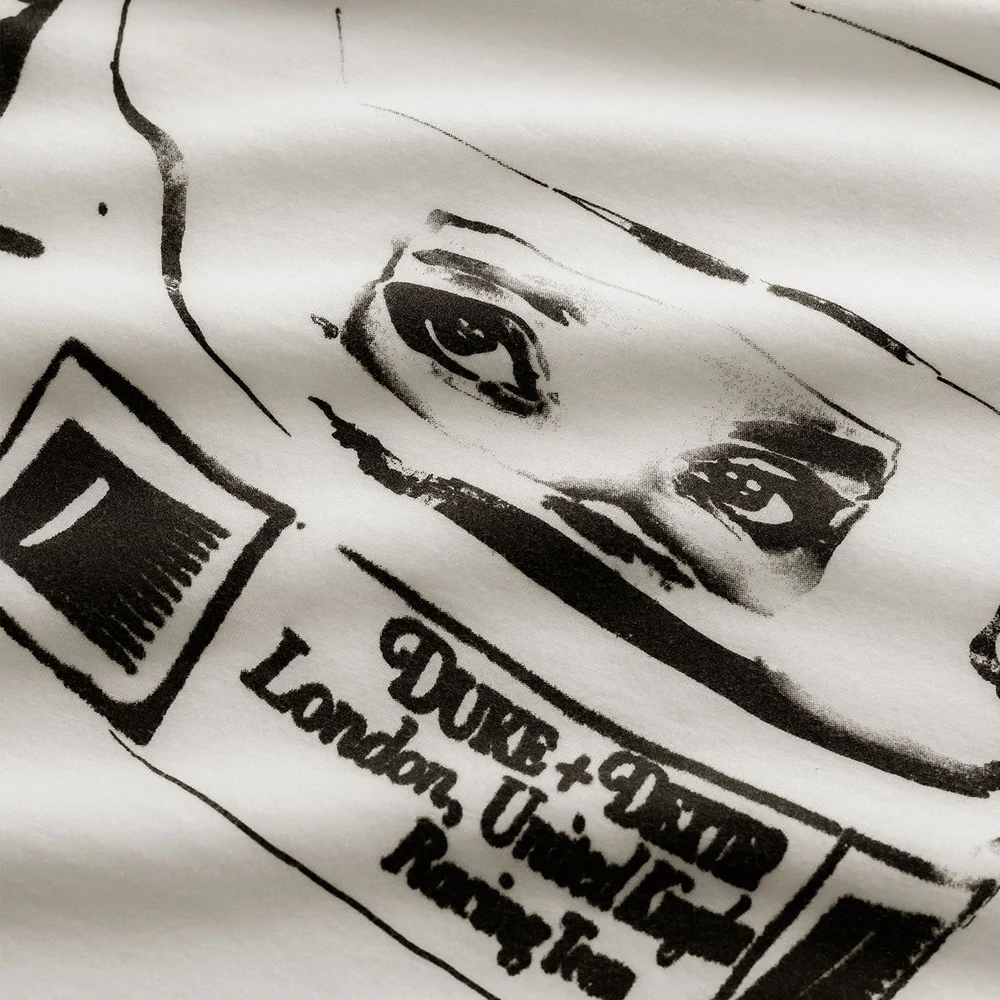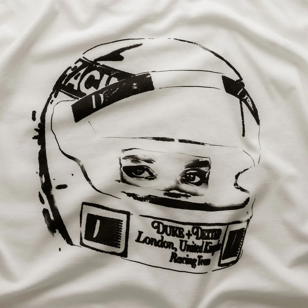 Notre t-shirt DR Sketch est sérigraphié au dos avec une version déconstruite de notre motif « Helmet », dessinée numériquement à la main par notre artiste interne, Valentino. Il est confectionné en jersey de coton de 220 g/m² et présente une coupe décontractée, avec des épaules tombantes et un ourlet à double surpiqûre.