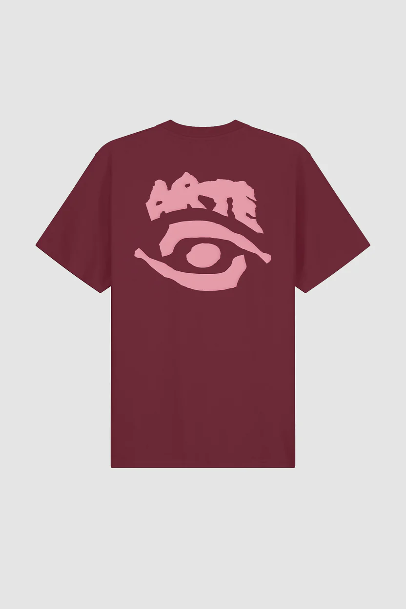 Le T-shirt comporte une œuvre d’art sérigraphiée en rose dans le dos qui reprend le thème de la collection. Fabriqué en coton épais de première qualité, ce T-shirt bordeaux est doux au toucher, avec une encolure légèrement plus haute et une coupe décontractée.