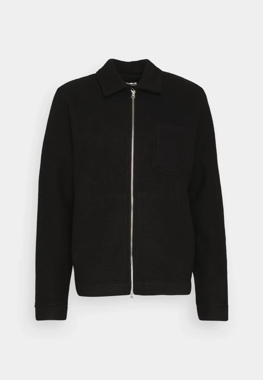 Cardigan coupe regular avec fermeture zippée double. Col pointu, poche de poitrine. Tissu de sweat-shirt feutré 100 % laine.