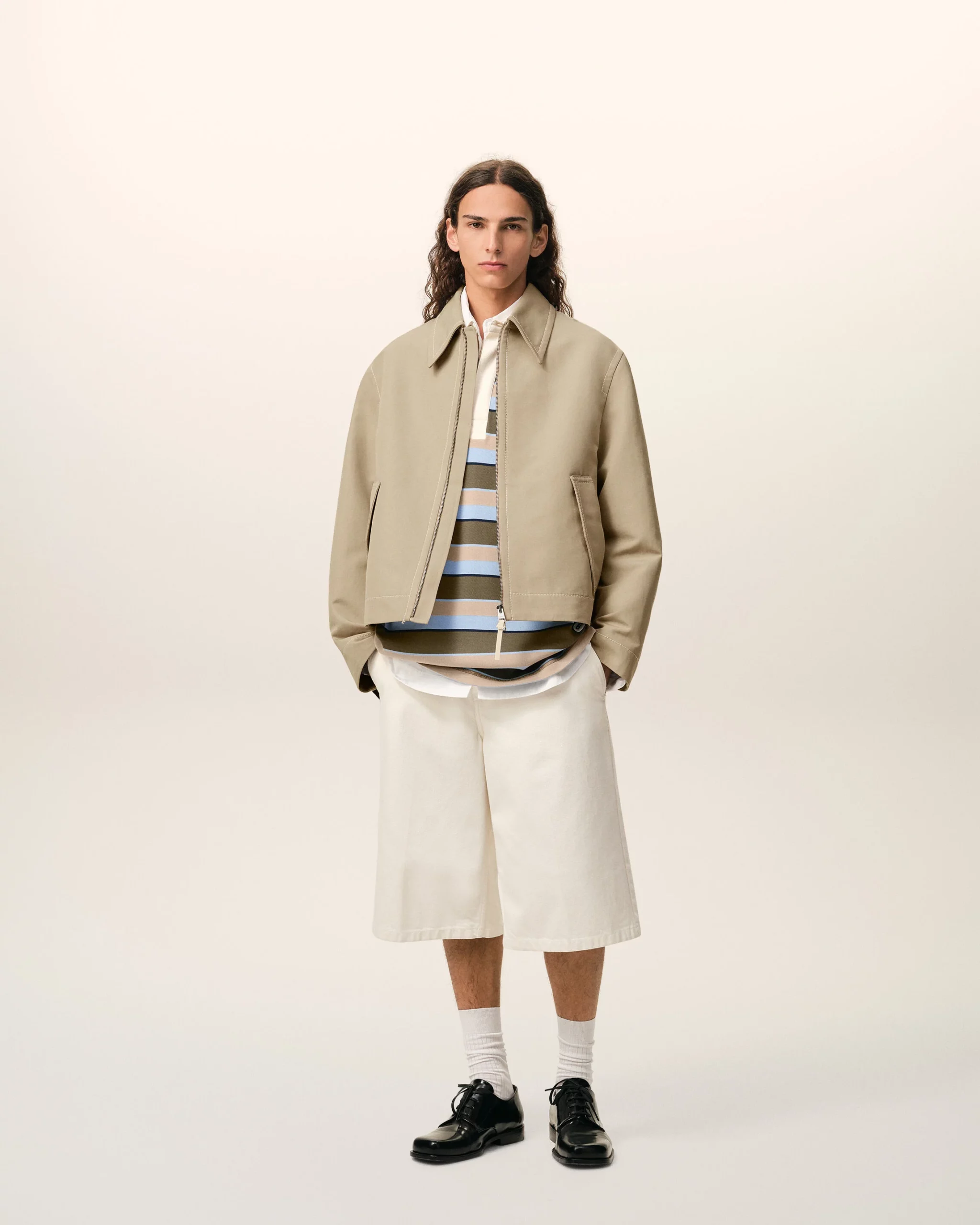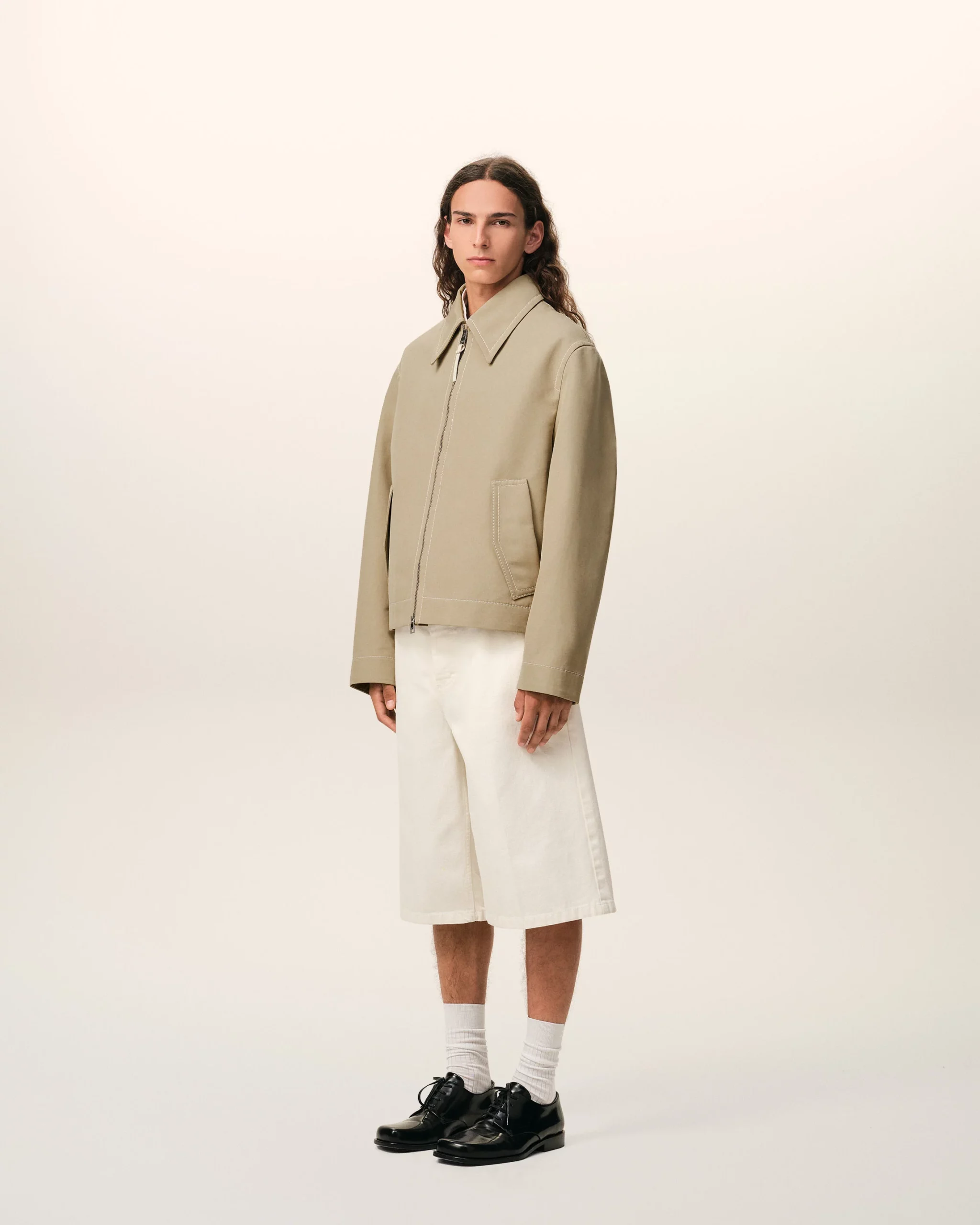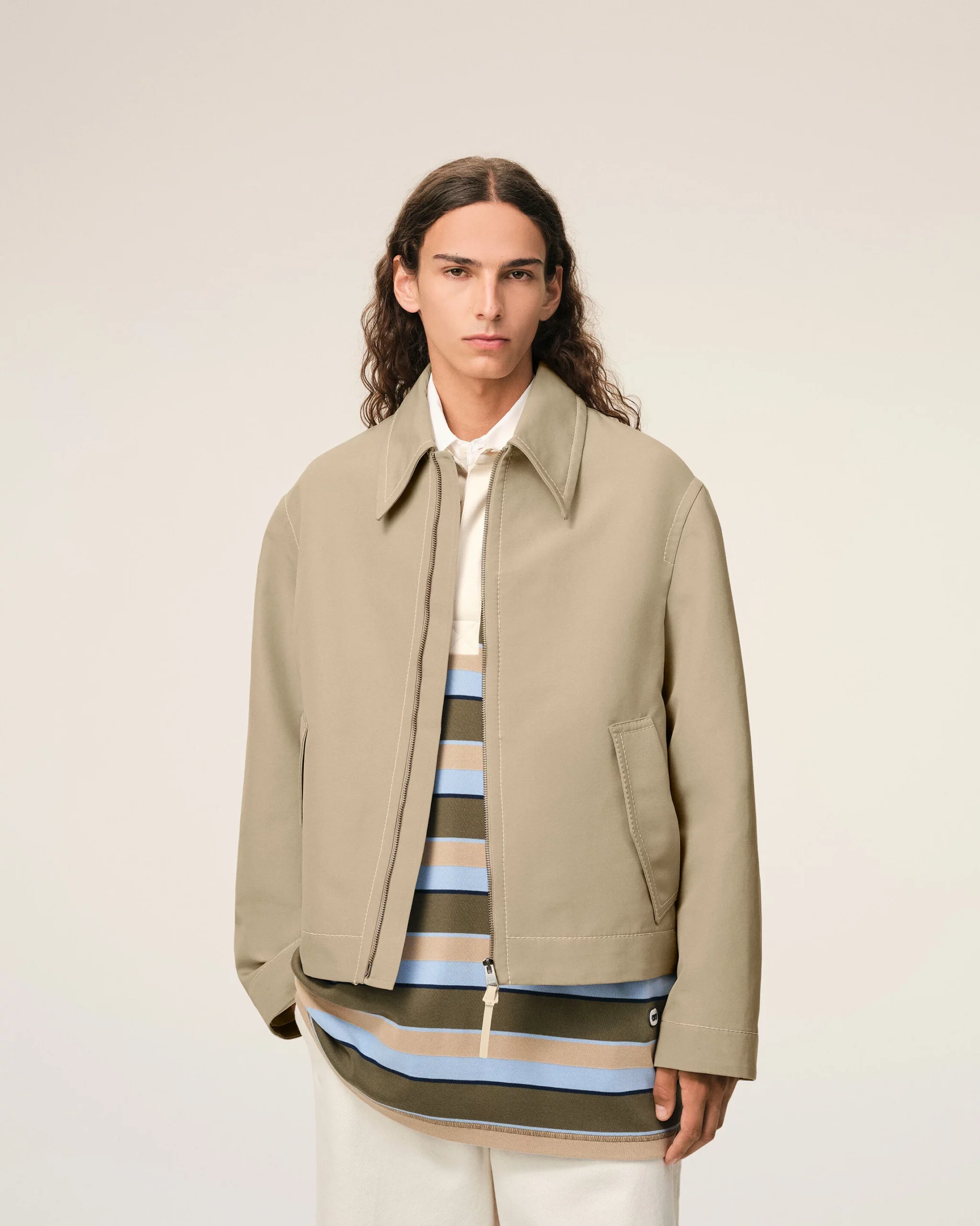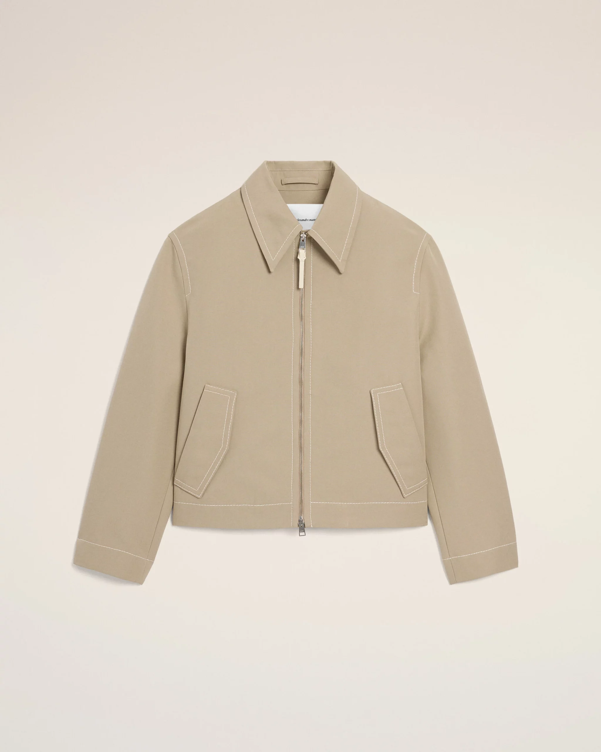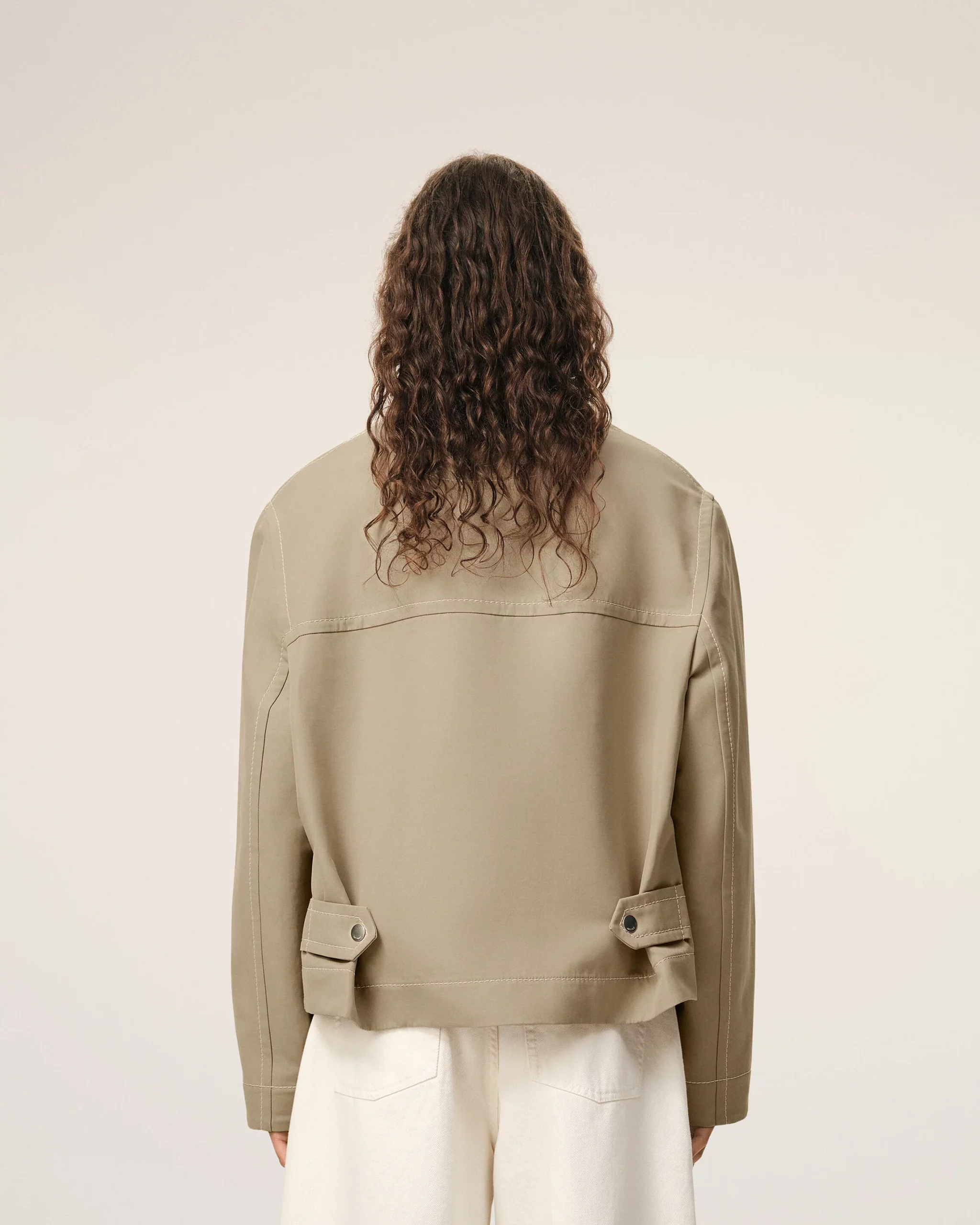 Blouson zippé en gabardine de coton double face.