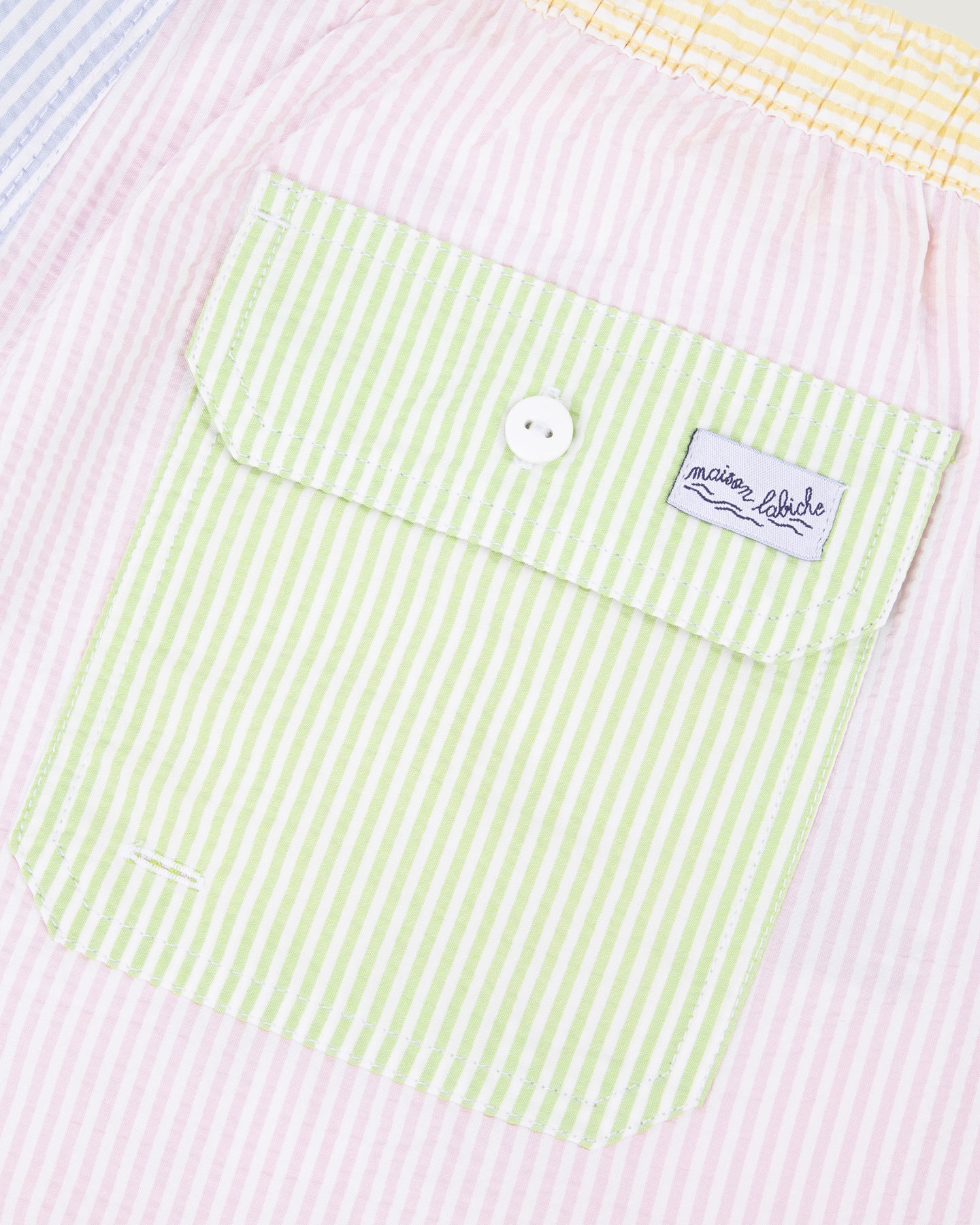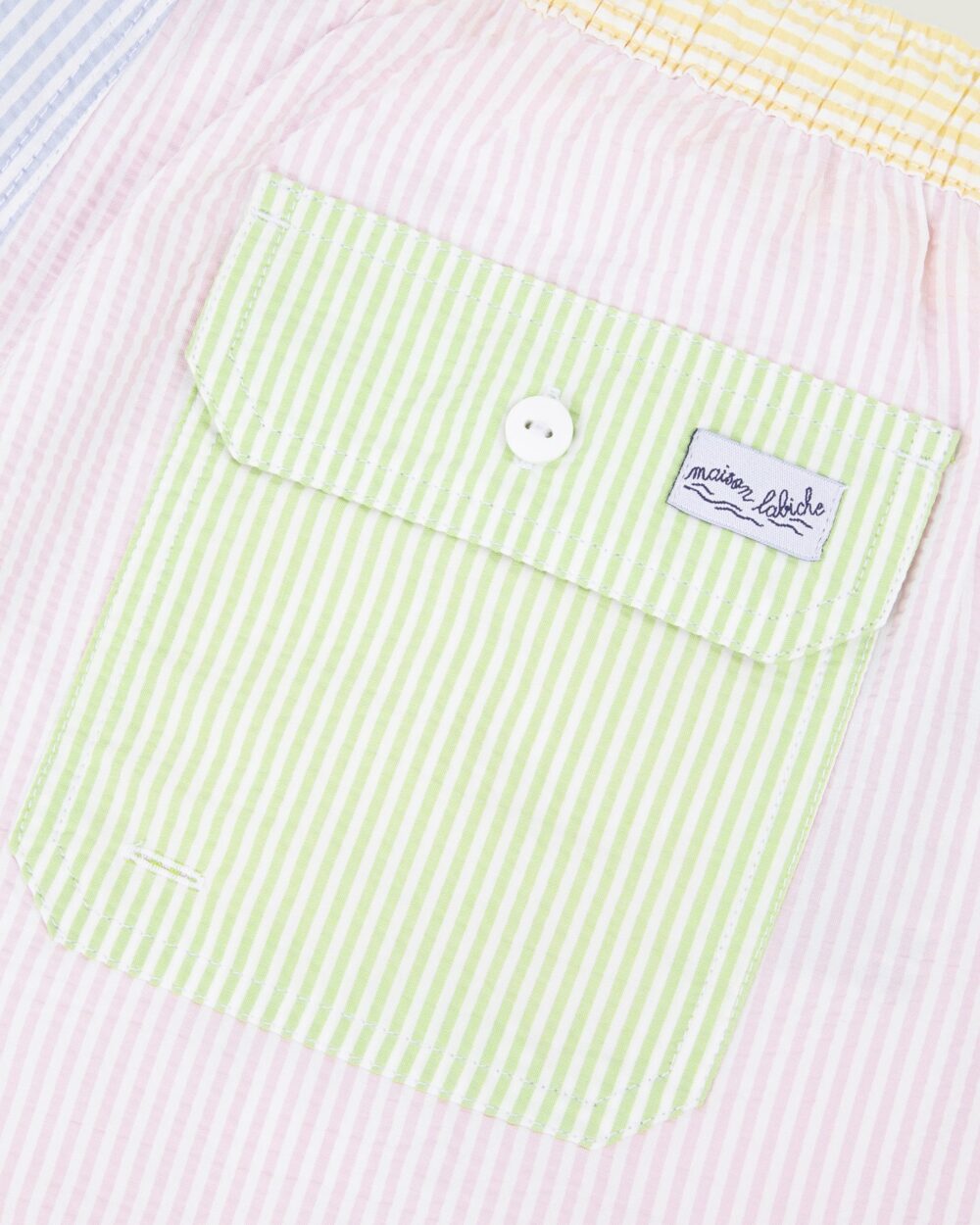 Le short de bain Maillot a une coupe confortable, une ceinture élastiquée, un cordon de resserrage à la taille et des poches sur le côté ainsi qu’une au dos. Sa broderie signifie qu’on s’autorise une pause.