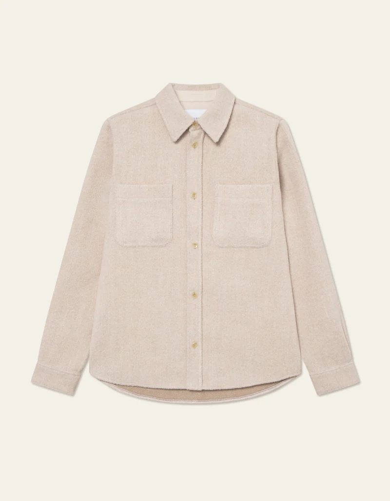 Un favoris revient en bouclé épais. Le Lennon est une pièce facile à superposer avec une finition texturée et une coupe légèrement carrée.