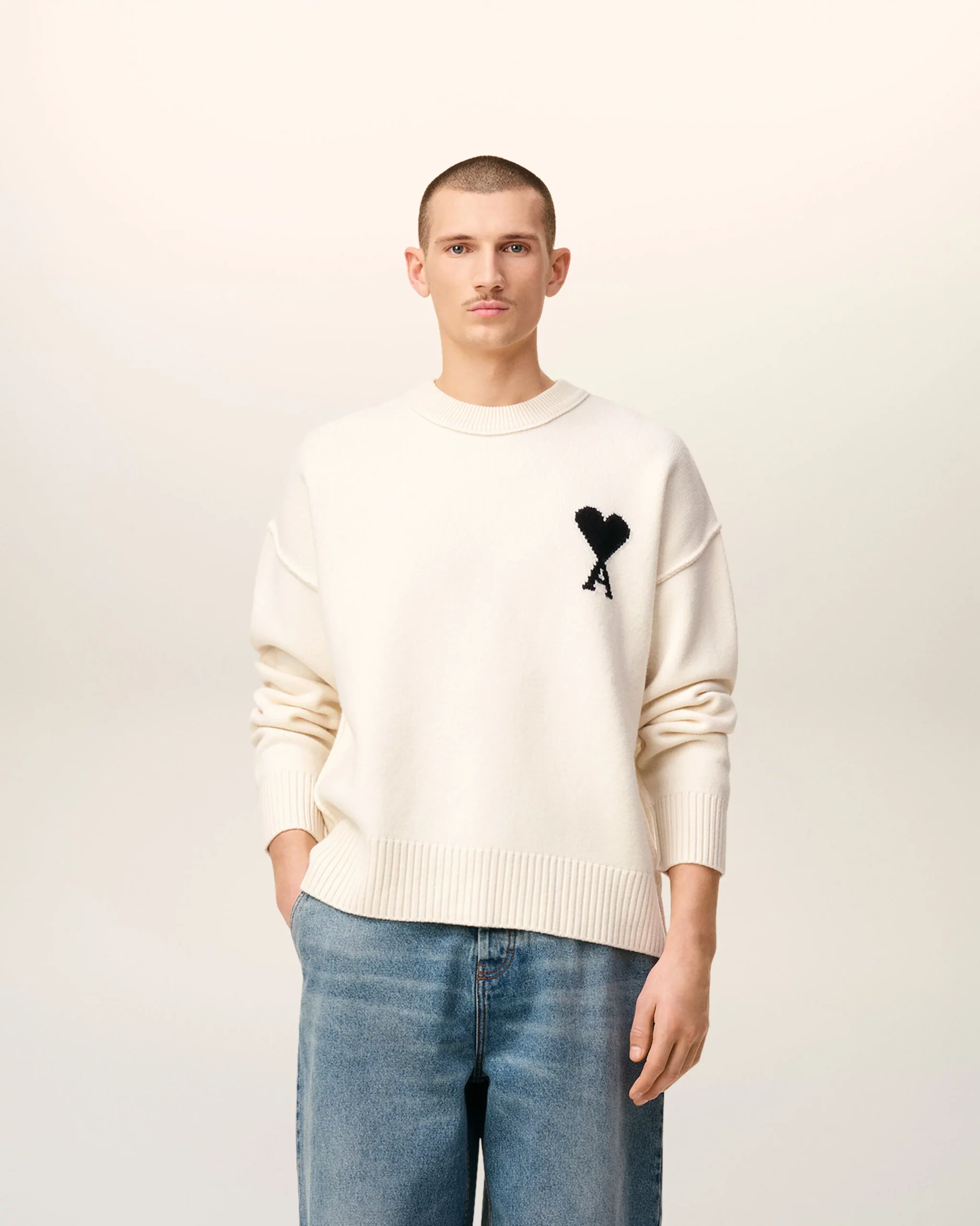 Logo Ami de Coeur tricoté en intarsia sur la poitrine