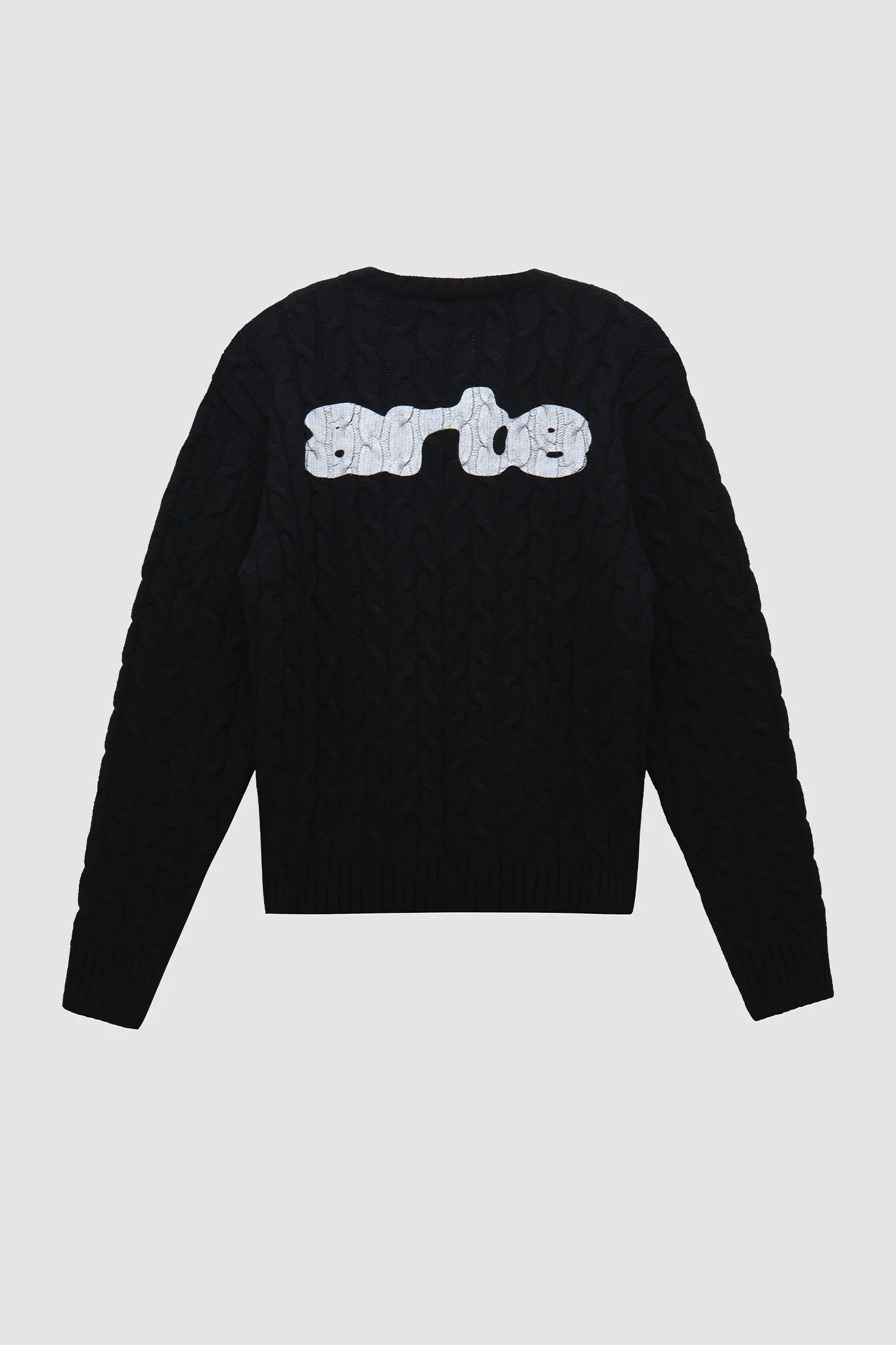 Confectionné en coton épais, ce pull tricoté avec des câbles se décline dans un coloris noir et présente une coupe régulière. Le pull est orné d’un logo Arte saisonnier qui reprend le thème de la collection, sérigraphié en blanc dans le dos.