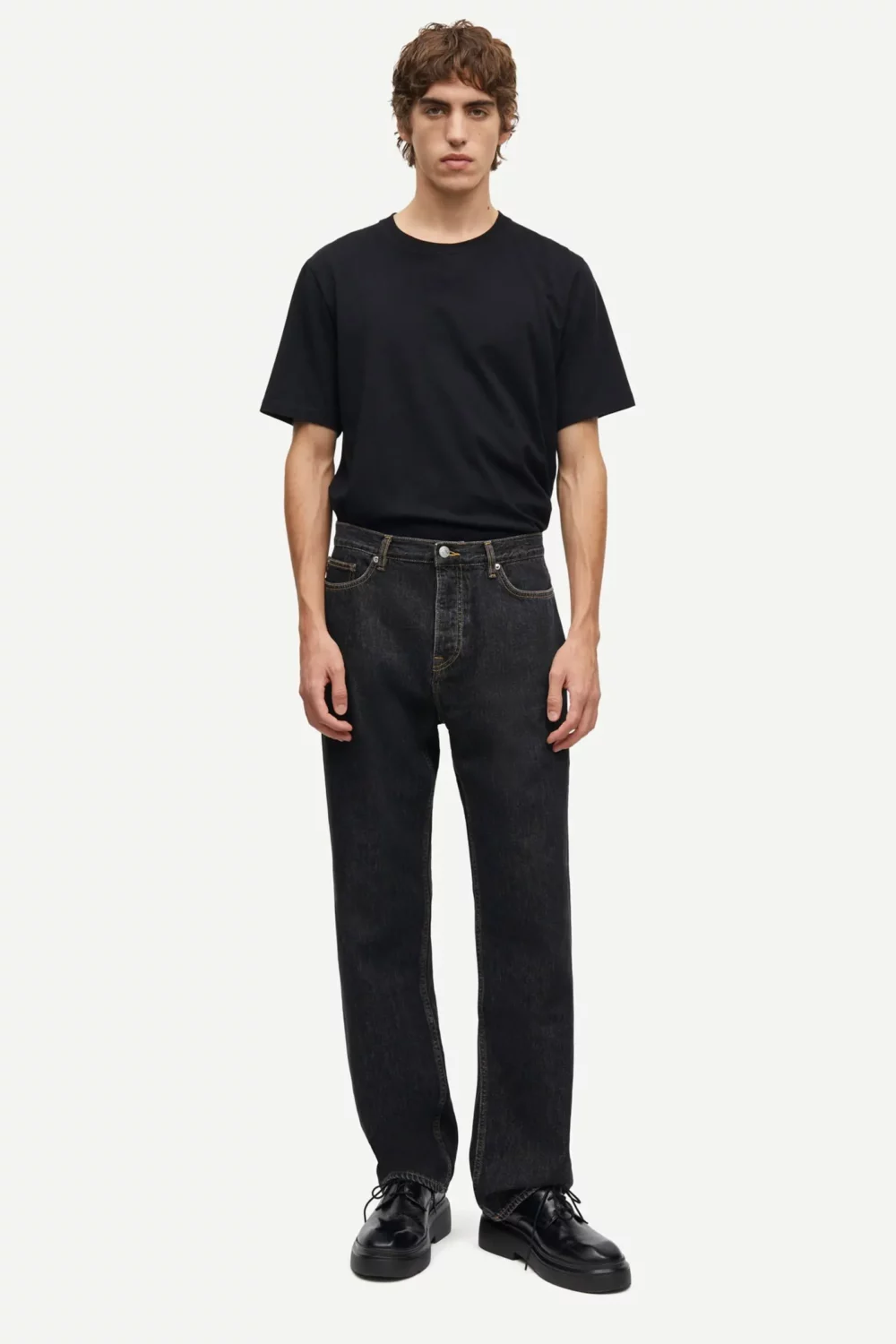 Jean taille mi-haute avec une coupe regular et des jambes droites. Fermeture boutonnée. Modèle à cinq poches. Passants de ceinture. Matière principale : mélange de coton biologique et de coton recyclé.
