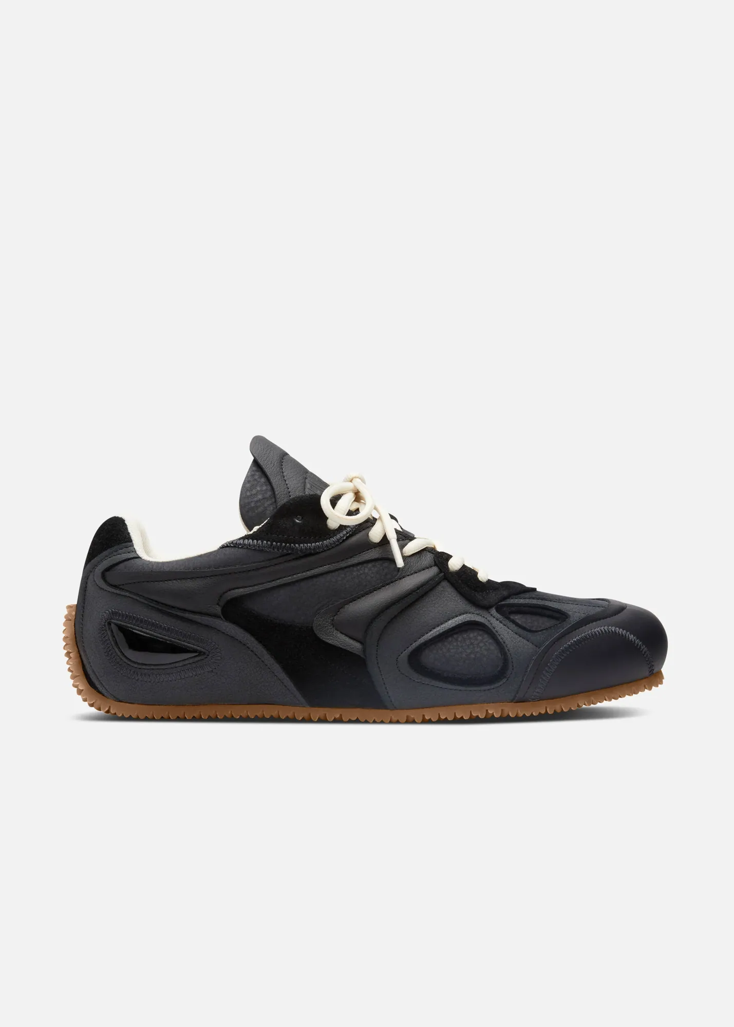 La silhouette superposée et sobre de la Slow Runner incarne un esprit de déconstruction et d’innovation. Mélange parfait de tradition et de nouveauté, la tige réinvente l’emblématique Marathon Runner à travers des empiècements familiers et complexes en cuir, daim et nubuck. Ce modèle repose sur une semelle plate et élégante, dont la finition unique d’inspiration maille évoque les éléments de design de nos collections de prêt-à-porter.