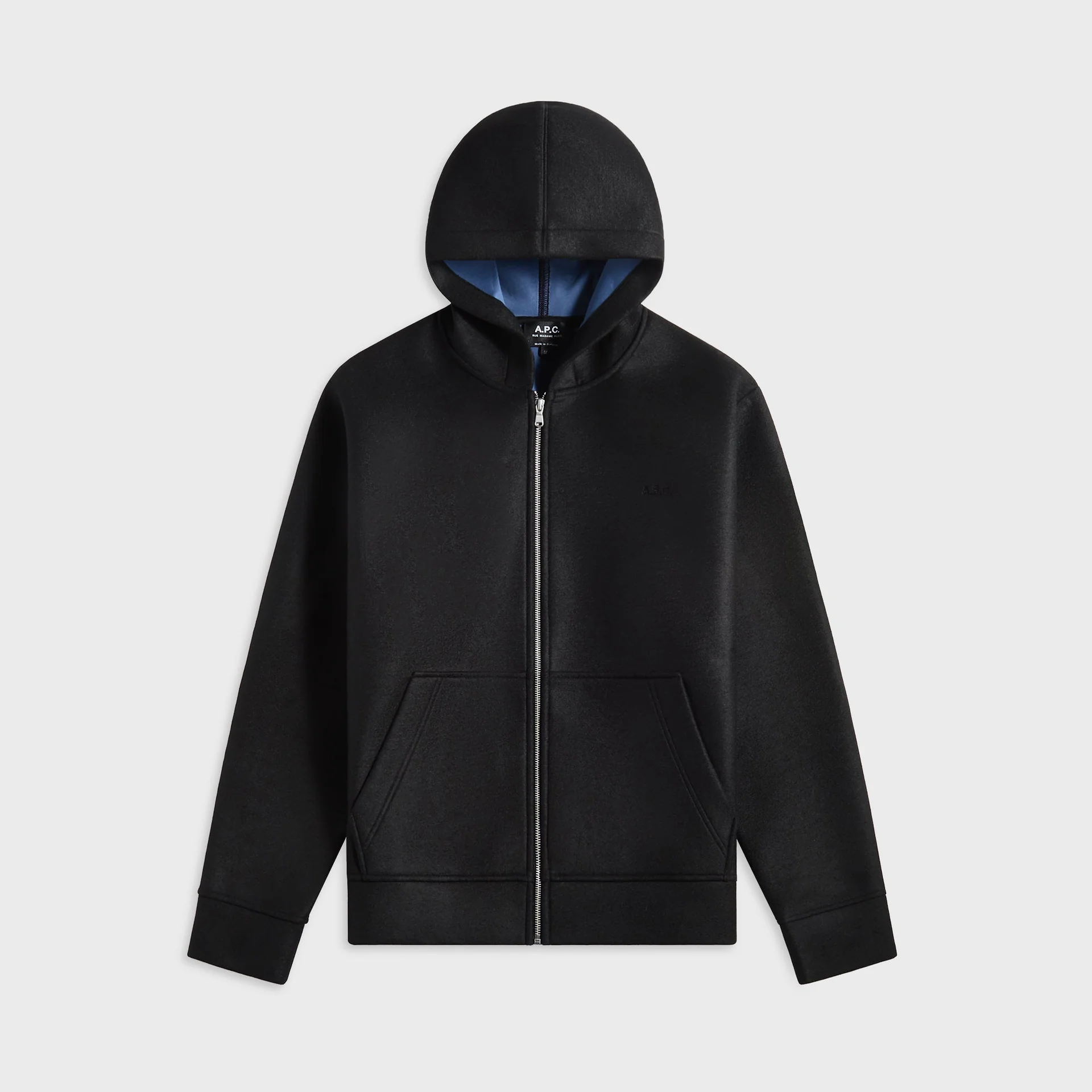 Logo A.P.C. brodé en tonsur ton sur le coeur.