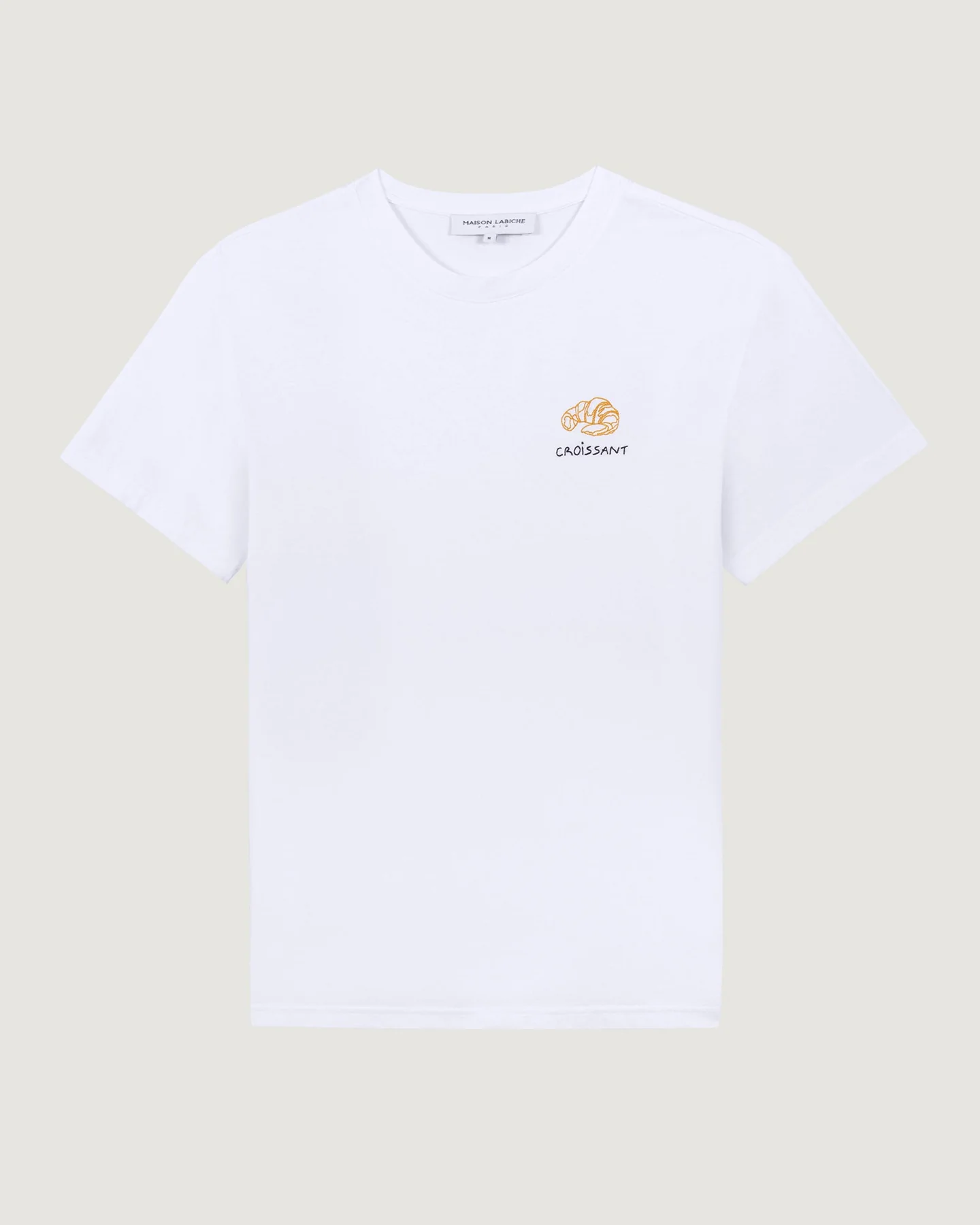 Notre tee-shirt iconique Popincourt unisexe a une coupe droite, un col ras du cou en bord-côte, une bande de propreté intérieure et une piqure double aiguille aux ourlets. Sa broderie résume les petits plaisirs de la journée.