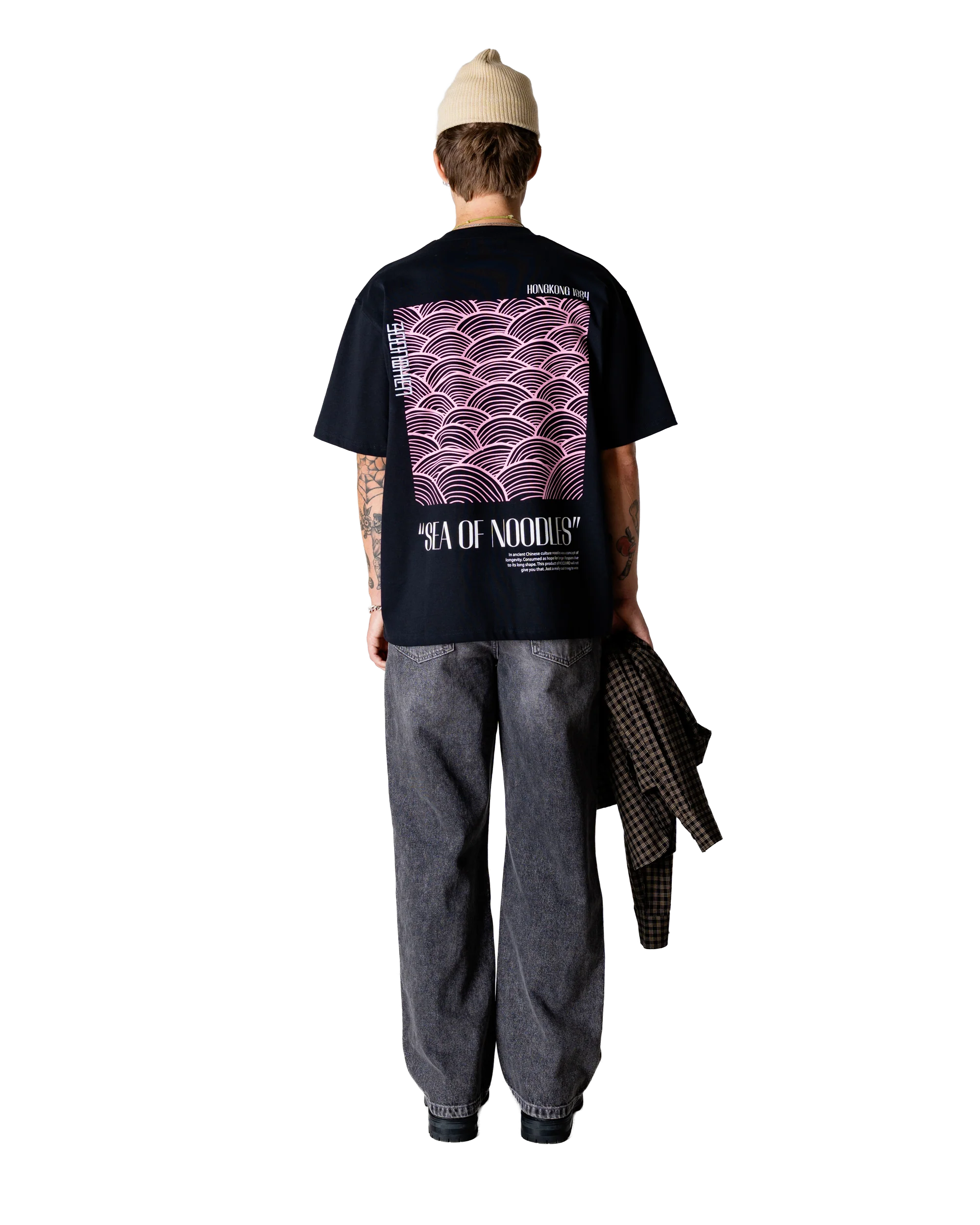 T-shirt à la coupe décontractée avec un grand motif graphique « Mer de nouilles » au dos.
