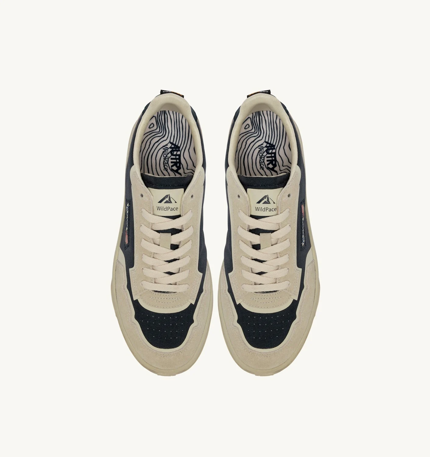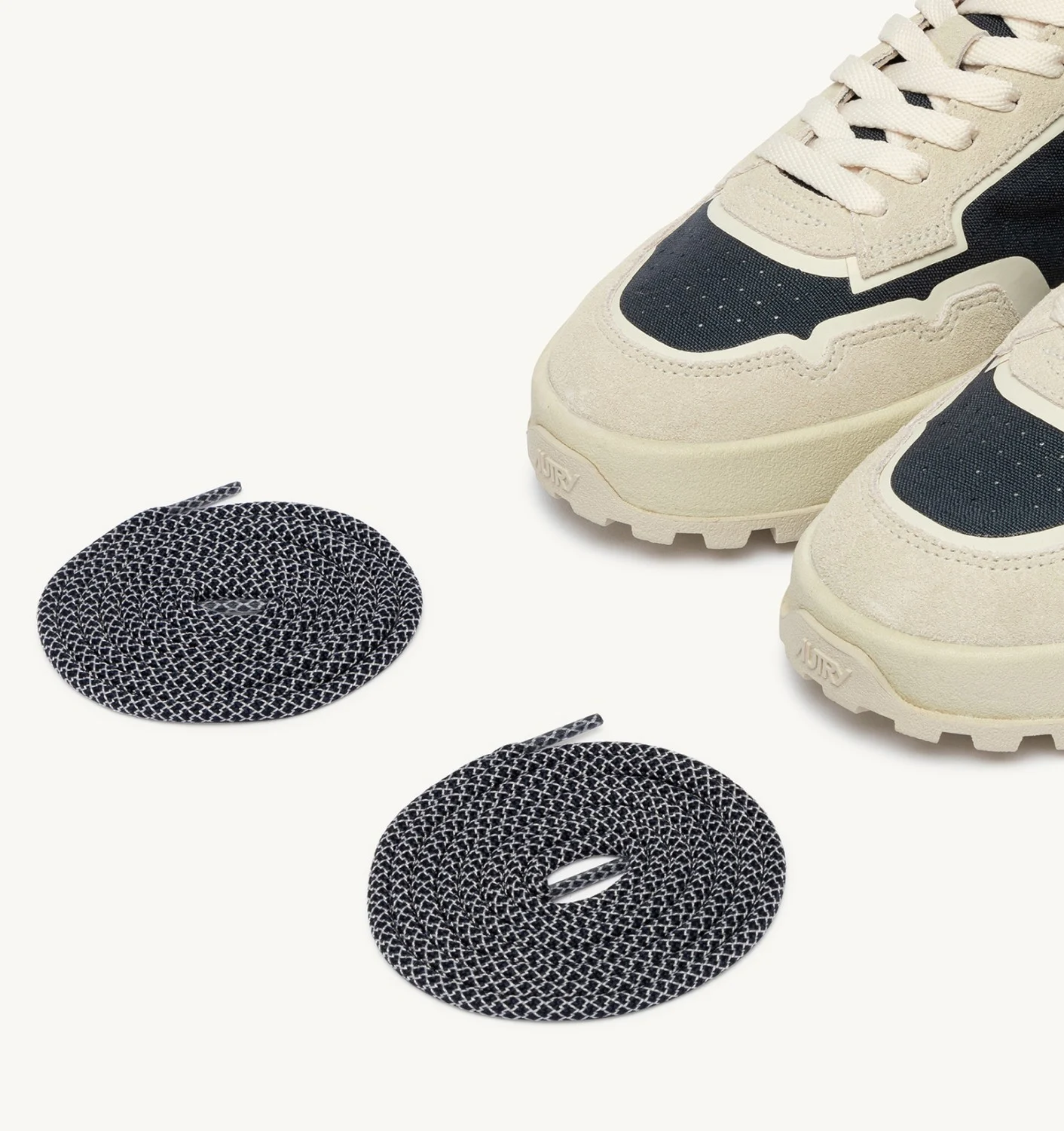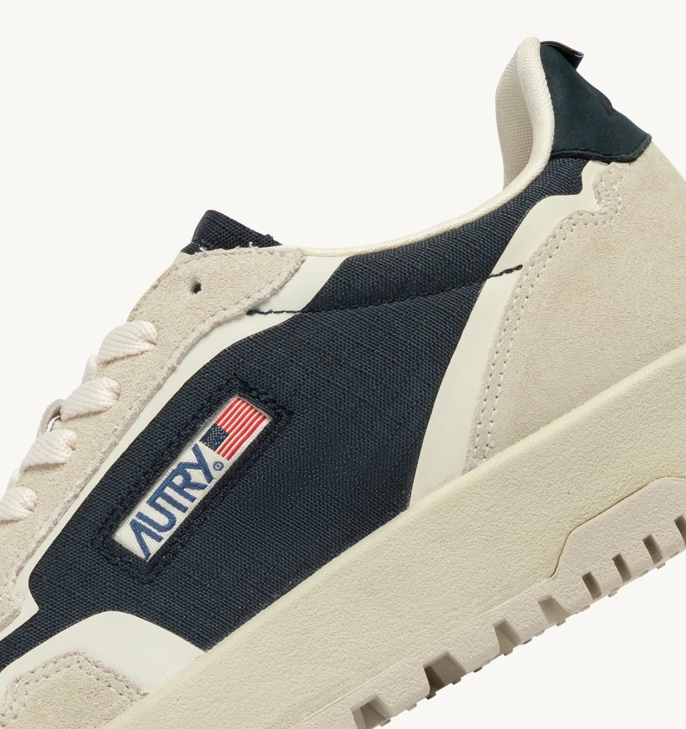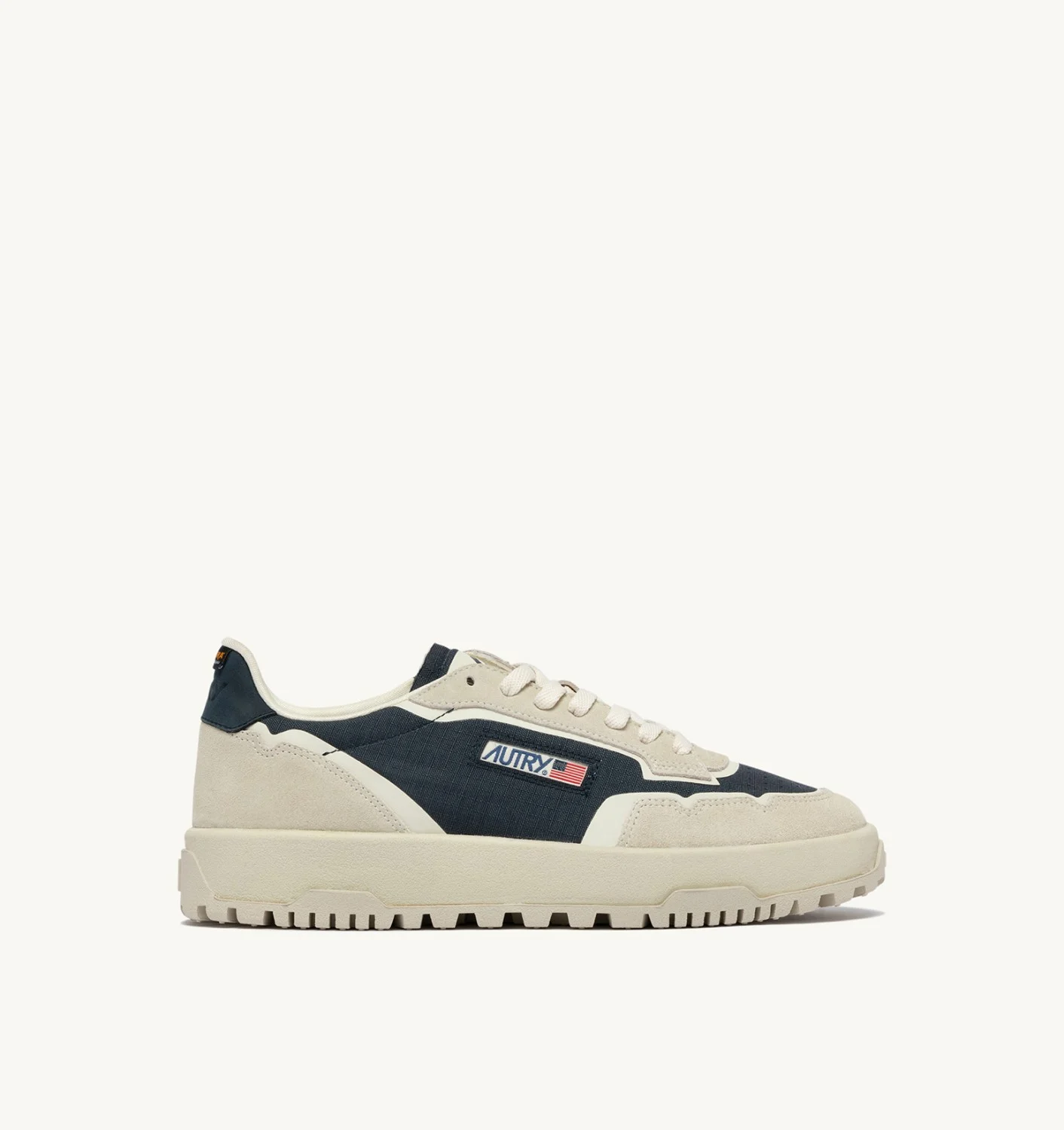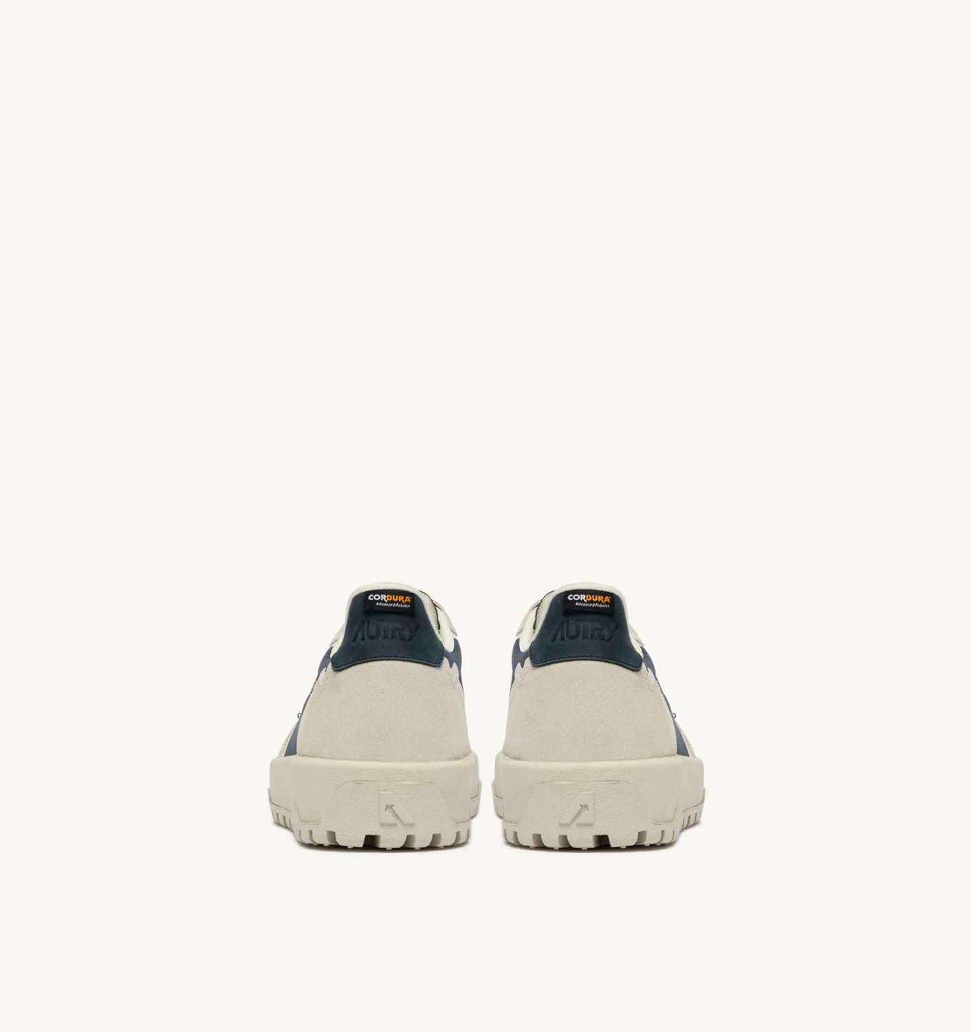 Réalisées en tissu Cordura et daim dans les tons blanc et bleu, elles sont enrichies de détails en TPU enduit, d’un détail latéral avec le logo Autry et d’un talon en cuir avec logo imprimé.