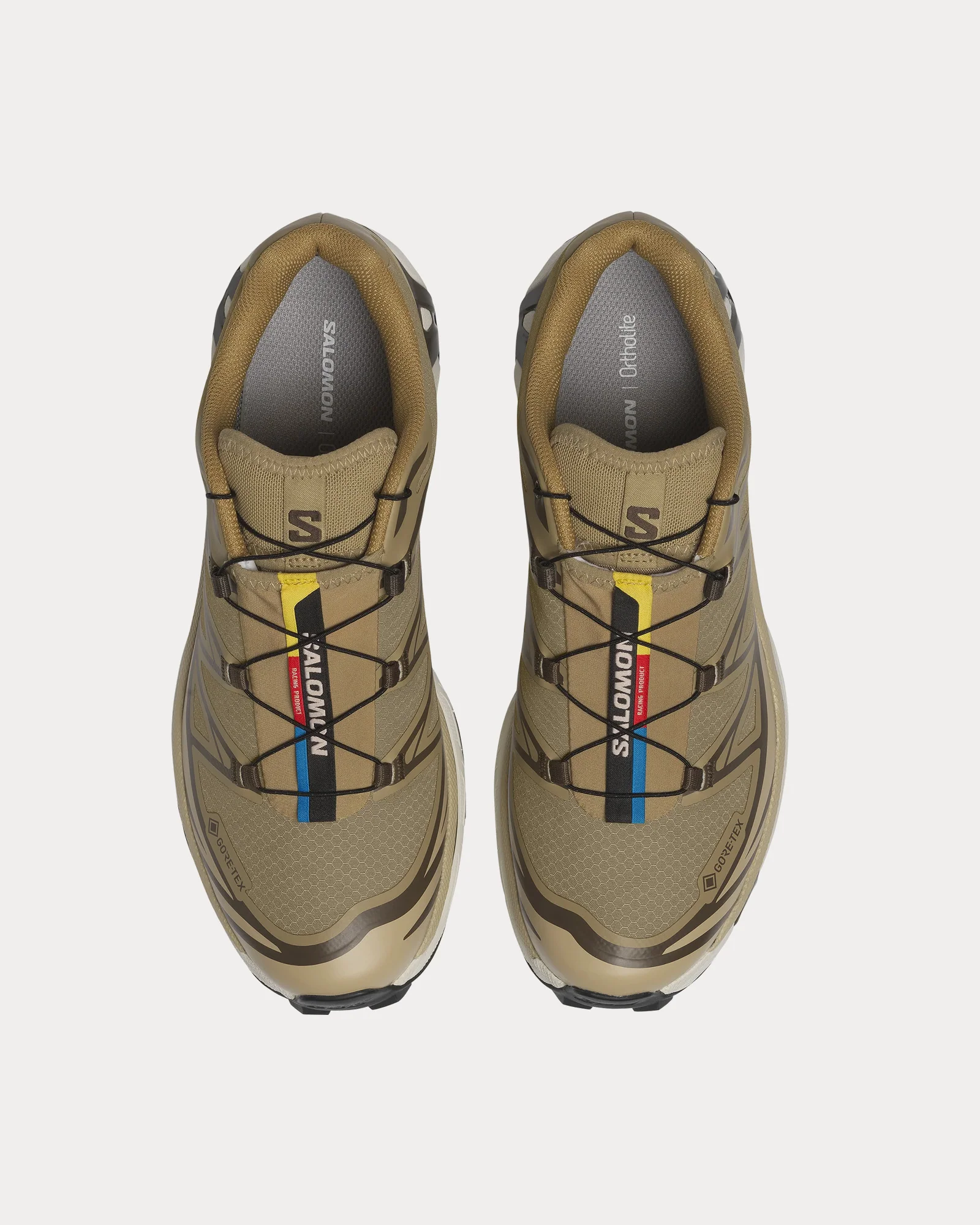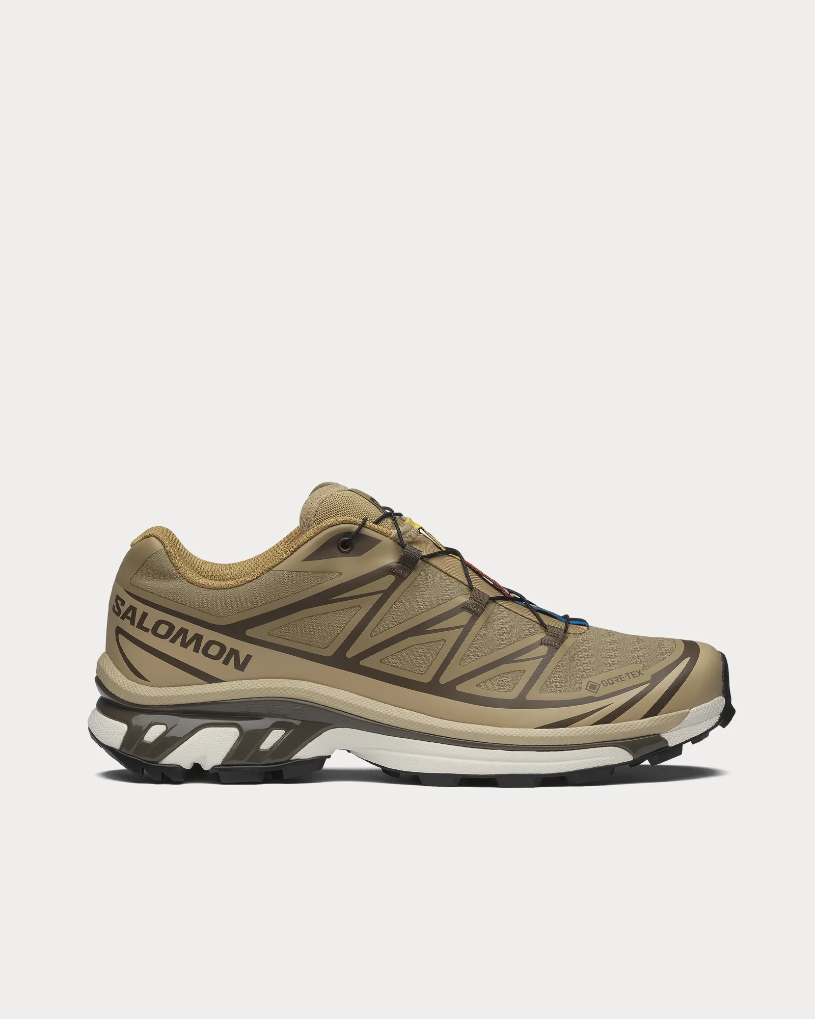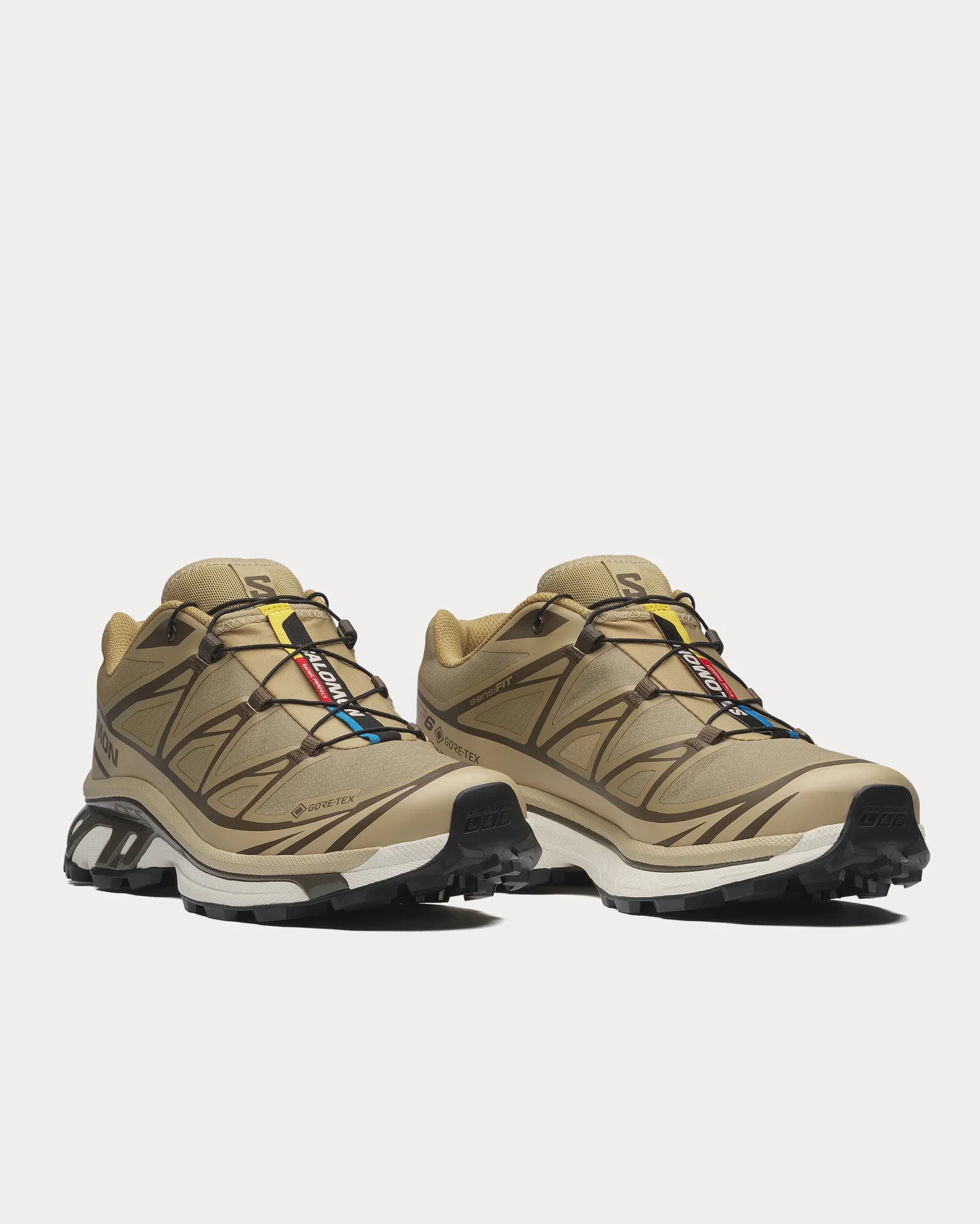 Les baskets basses unisexes Salomon XT-6 Gore-Tex en beige, marron et noir sont une chaussure de course sur sentier qui s’est adaptée aux environnements urbains, avec des matériaux moelleux, des panneaux cousus et une construction Sensifit pour une sensation rétro en couches qui ajoute de la profondeur et de la texture au design emblématique. L’édition Salomon XT-6 Gore-Tex est dotée d’une membrane ePE innovante, d’une construction en maille sans PFC et anti-débris